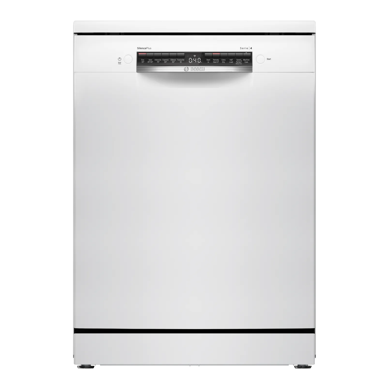 Washing your dirty dishes has never been easier, thanks to the Bosch SMS4EKW06G. With room for up to 13 place settings as well as six programmes and four temperature settings to choose from, you’ll find the perfect combination for your load. Featuring ExtraDry, this option dries your dishes using higher temperatures during the rinse cycle, and with a longer drying phase, your crockery will be ready to put away. Reach for the SpeedPerfect button to get dishes cleaned in up to 65% less time. If that’s not all, the Silence 50° option reduces noise levels to the lowest minimum possible. What’s more, with Home Connect you can start cycles, add favourites, and troubleshoot all from an app on your smartphone or tablet – just connect to your Wi-Fi to get going.
