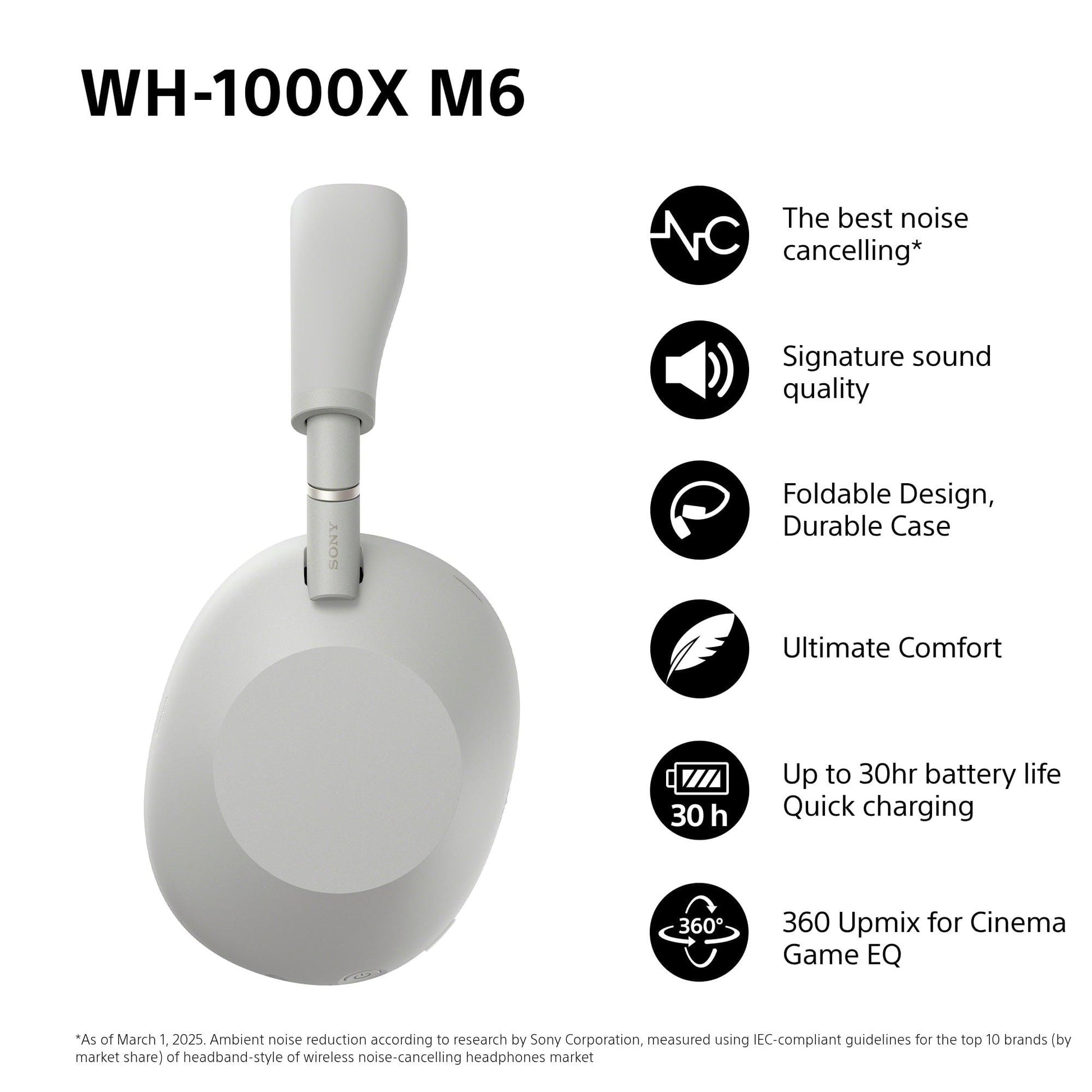 SONY WH-1000XM6S Flagship Noise Cancelling Over-Ear Wireless Bluetooth Headphones, Signature Hi-Res Sound, Ultimate Comfort, Foldable Design, Durable Case, 30 HR Battery, iOS & Android - Silver