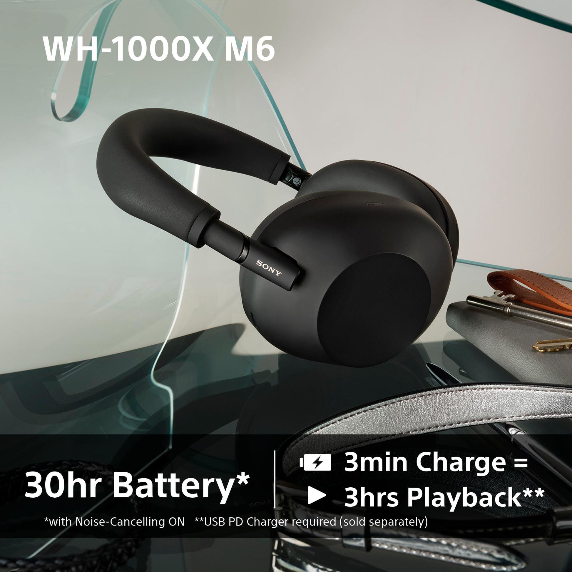 The battery provides up to 30 hours of playback and quick charging. You can even use the WH-1000XM6 whilst charging.