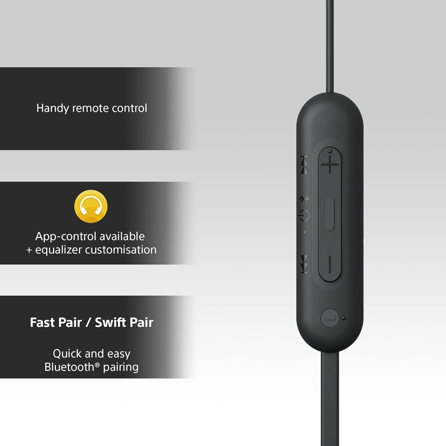 The WI-C100 headphones are easy to operate, with buttons to play and pause, skip tracks and adjust the volume, as well as receive calls. For convenience, the buttons have even been redesigned, with a more pronounced shape making them easier to press.