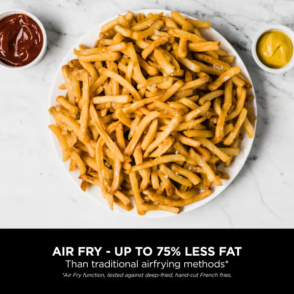 - Air Fry for a crispy finish using little to no oil - up to 75% less fat. A healthier alternative to frying, air frying evenly circulates super-hot air around food to remove excess moisture and give it a delicious golden finish.