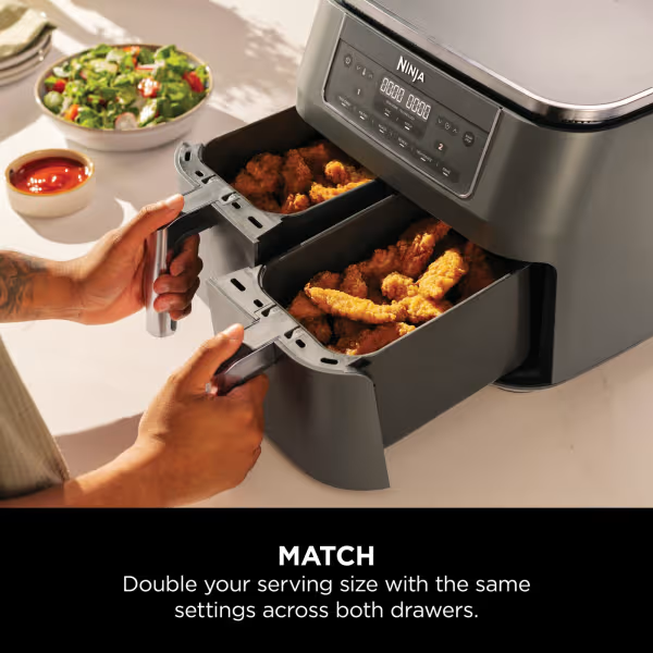 MATCH: Cooking for extra guests or feeding the whole family? Use the MATCH feature to duplicate the same function, time and temperature settings across both drawers – perfect for doubling your serving size, or cooking two different foods with the same instructions.