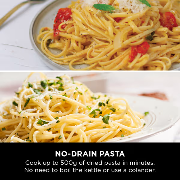 - Pasta: Delightfully al-dente pasta every time, without the need to drain water.
