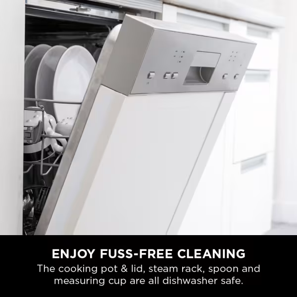 The non-stick cooking pot means you can cook using little to no oil. Plus, enjoy easy cleaning as the cooking pot, rice spoon, steam rack and glass lid are all dishwasher safe. And as the cooking pot is also oven safe up to 240 °C, enjoy the simplicity of multi-cooker meals with minimal washing up.