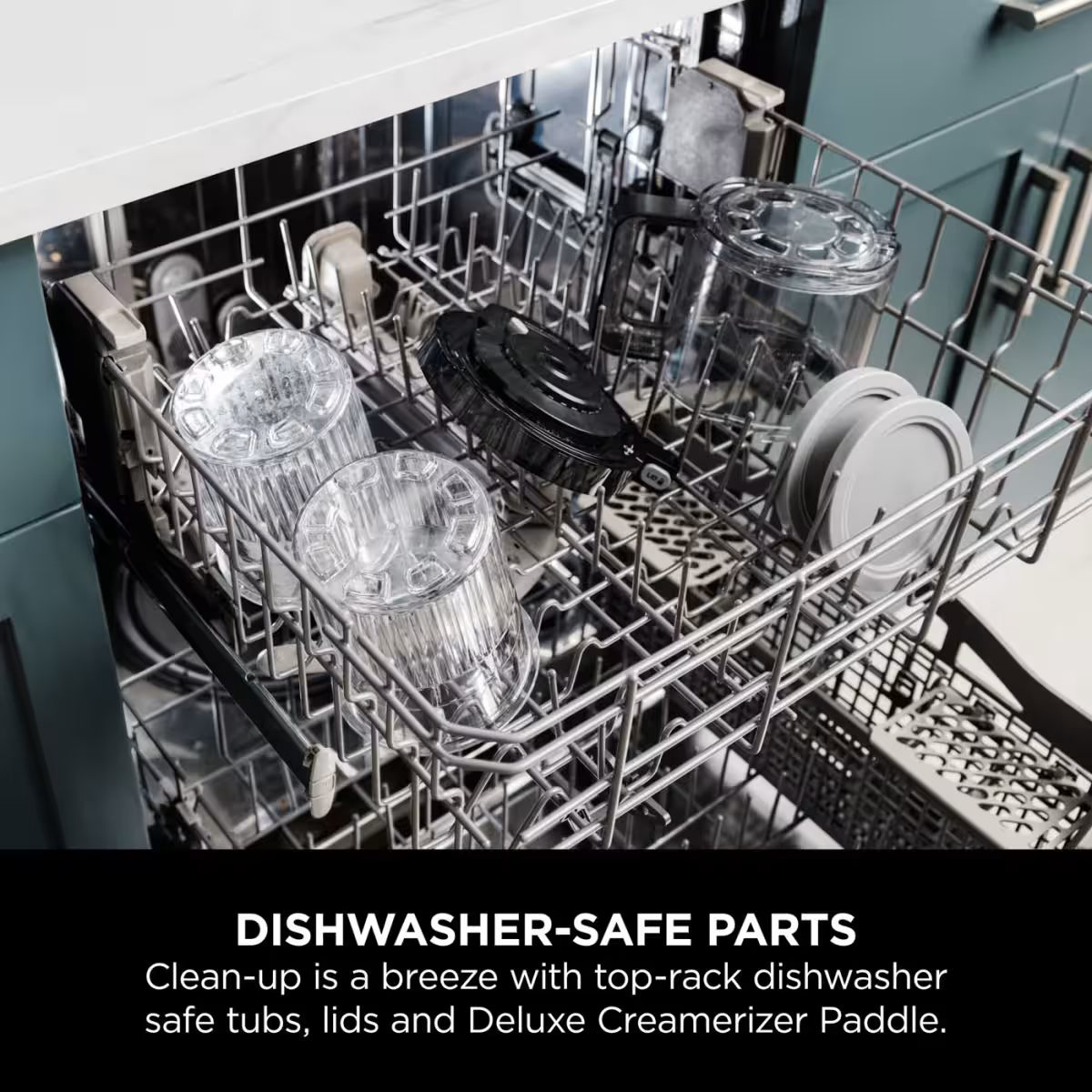 Need to clean up for your next milkshake or frozen yoghurt? Containers, lids, and the paddle are all top-rack dishwasher-safe to make cleanup a breeze, or you can also wash them by hand with soapy water.