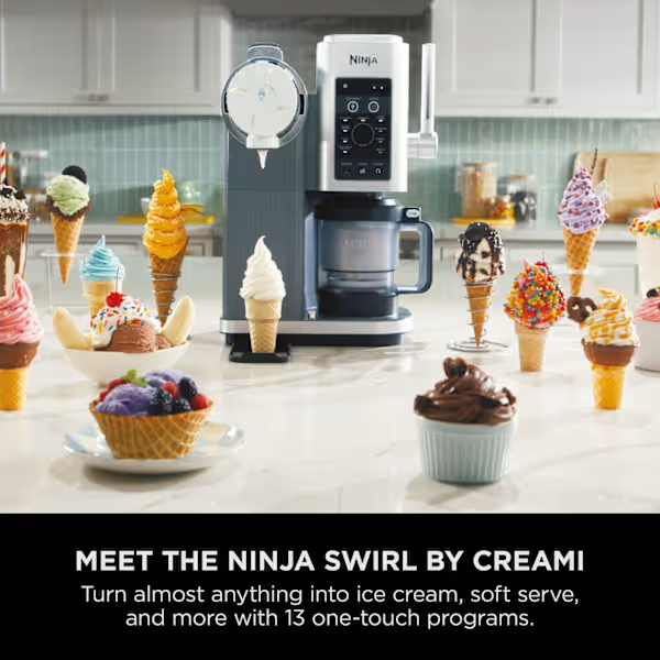 There’s even more to love about CREAMi. Introducing the Swirl by CREAMi 13-in-1 Soft Serve & Ice Cream Maker. Featuring Soft Serve Creamify Technology, turn almost anything into ice cream, soft serve and more. Simply freeze ingredients for 24 hours, select your chosen function, process and enjoy!