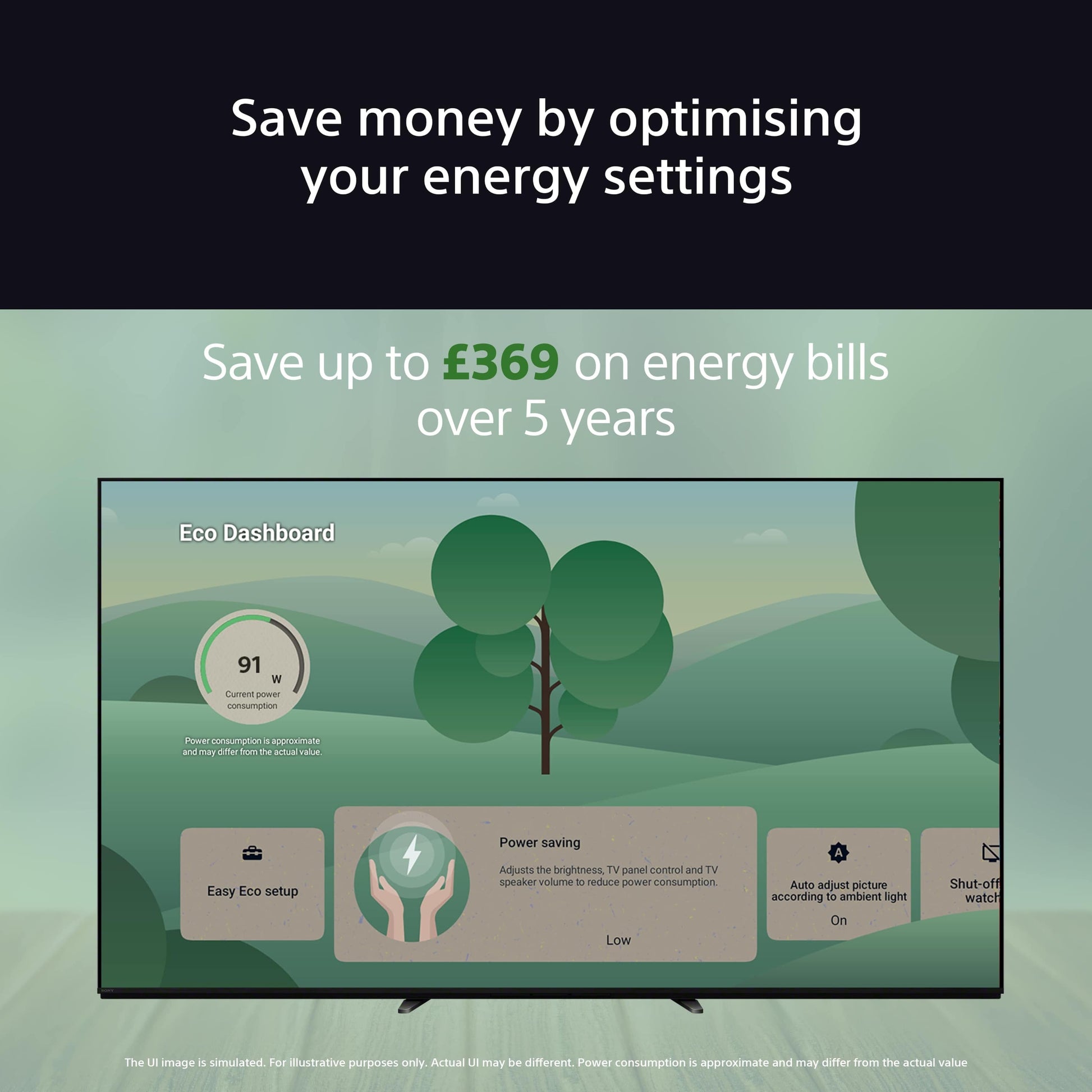 Made with the environment and your energy bills in mind, this TV is more energy efficient and features our new Eco Dashboard 2 for simple energy management. In fact, it could help you save on your energy bills. The TV is part-made from our own SORPLAS(8) recycled plastic, whilst the packaging is smaller and lighter to reduce C02 emissions(10).