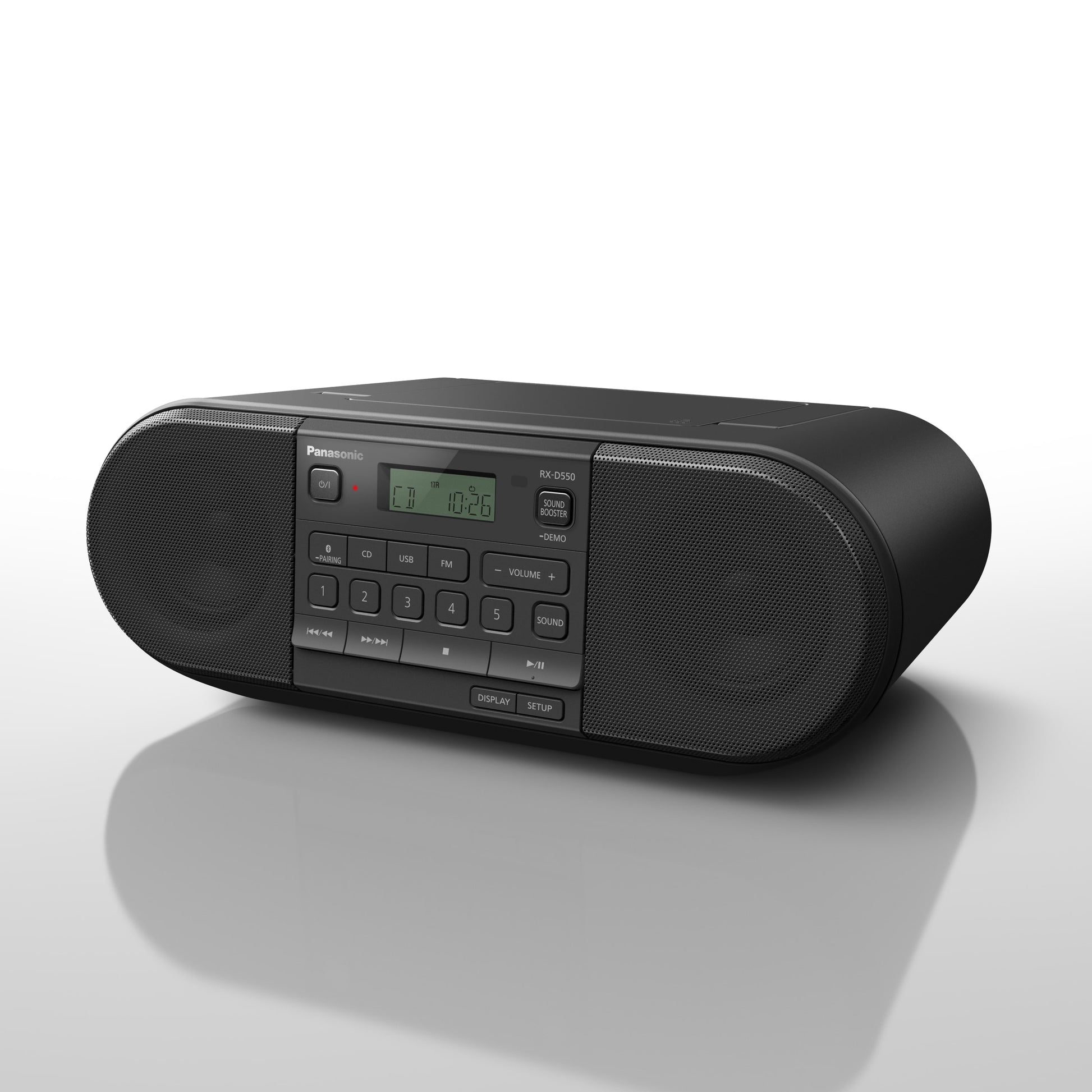 With 20W of power, D550 delivers beyond its compact sleek design. Bass performance is enhanced with Sound Booster and bass reflex ports – making it equally suited indoors or in the garden. You can choose music from FM radio, play CDs, stream from your mobile with Bluetooth®, or pick tracks direct from USB. With a remote control, and 5 radio pre-set buttons, listening to your favourite tunes is a breeze.