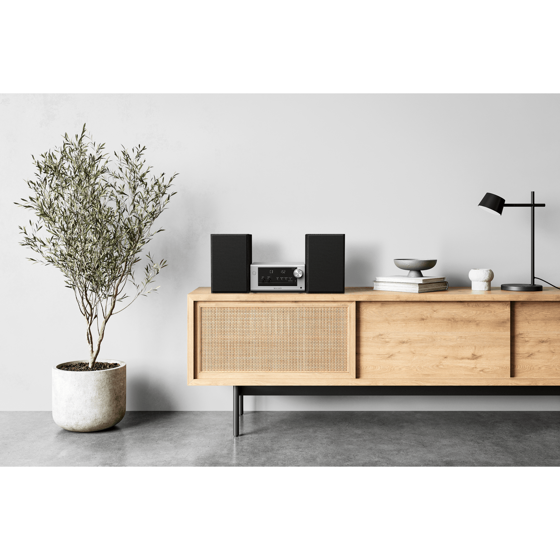A timeless design that will look great on any bookshelf or cabinet – with speakers that you can position to suit your needs. All excess clutter has been removed, leaving only the necessary, to create a simple intuitive control surface – with a high-quality tactile feel.