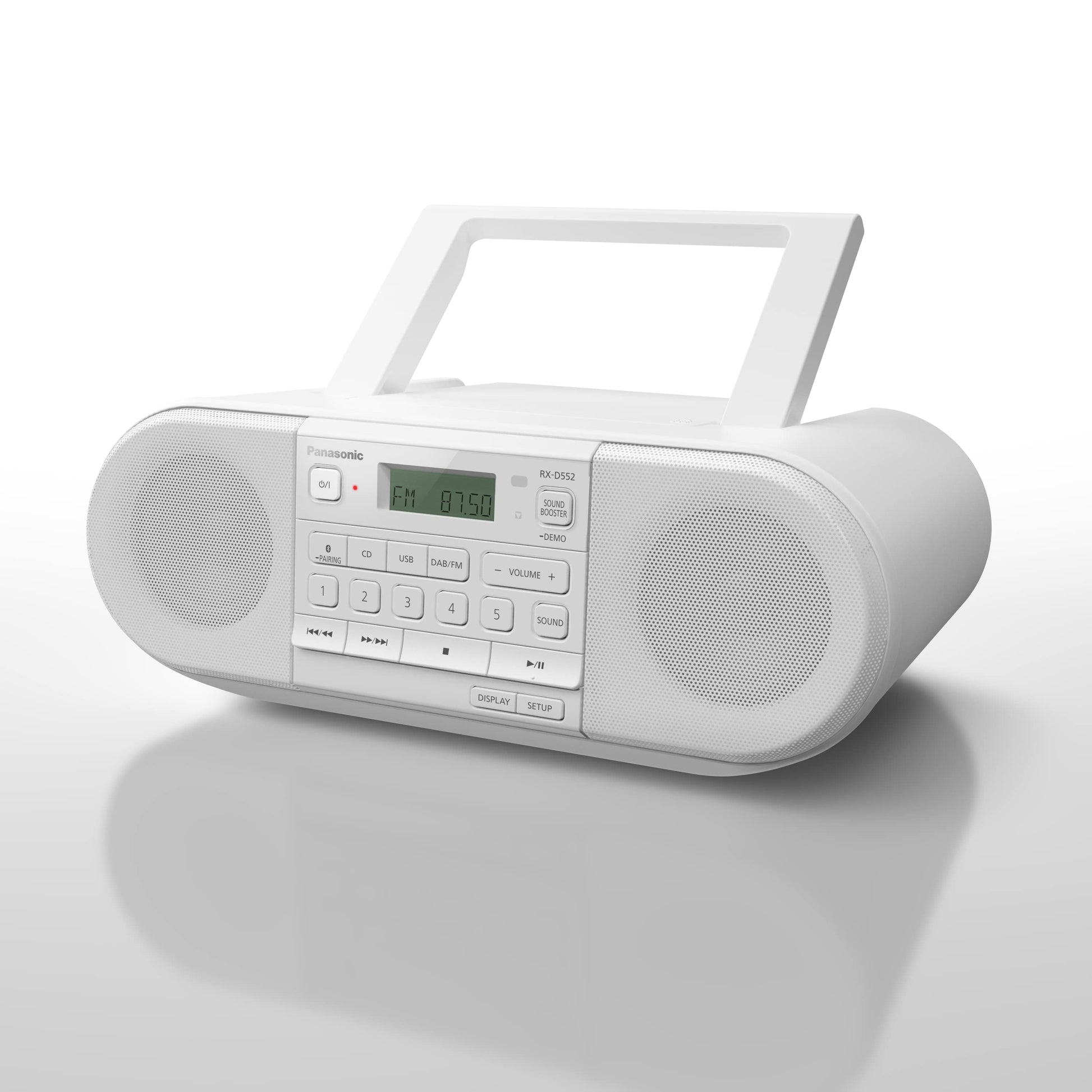 With 20W of power, D550 delivers beyond its compact sleek design. Bass performance is enhanced with Sound Booster and bass reflex ports – making it equally suited indoors or in the garden. You can choose music from FM radio, play CDs, stream from your mobile with Bluetooth®, or pick tracks direct from USB. With a remote control, and 5 radio pre-set buttons, listening to your favourite tunes is a breeze.
