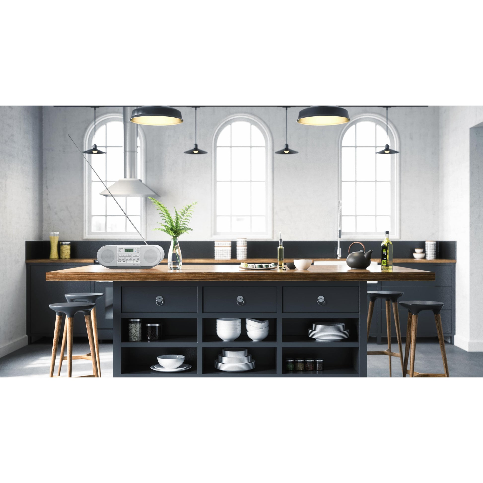 Thanks to an integrated carrying handle, a stylish compact form and the ability to take batteries – this unit is equally beneficial at home indoors or out. Its powerful rich sound makes it the perfect partner in the garden, kitchen or study.