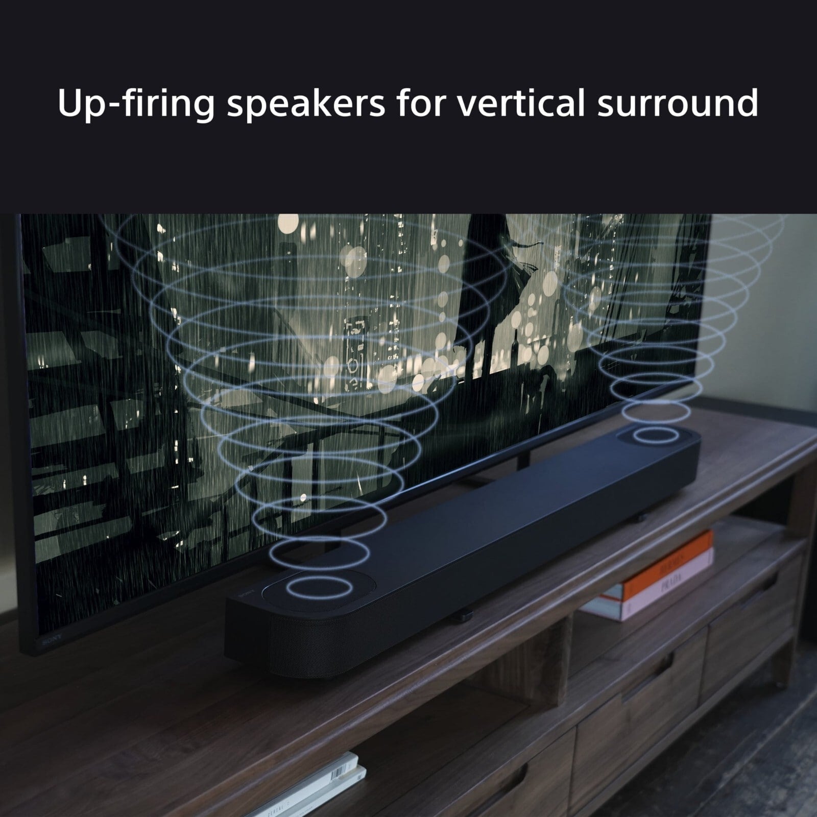 - IMMERSIVE SOUND FROM ABOVE: Two up-firing speakers complete your three-dimensional sound field with vertical surround sound, so there’s no need for in-ceiling speakers.