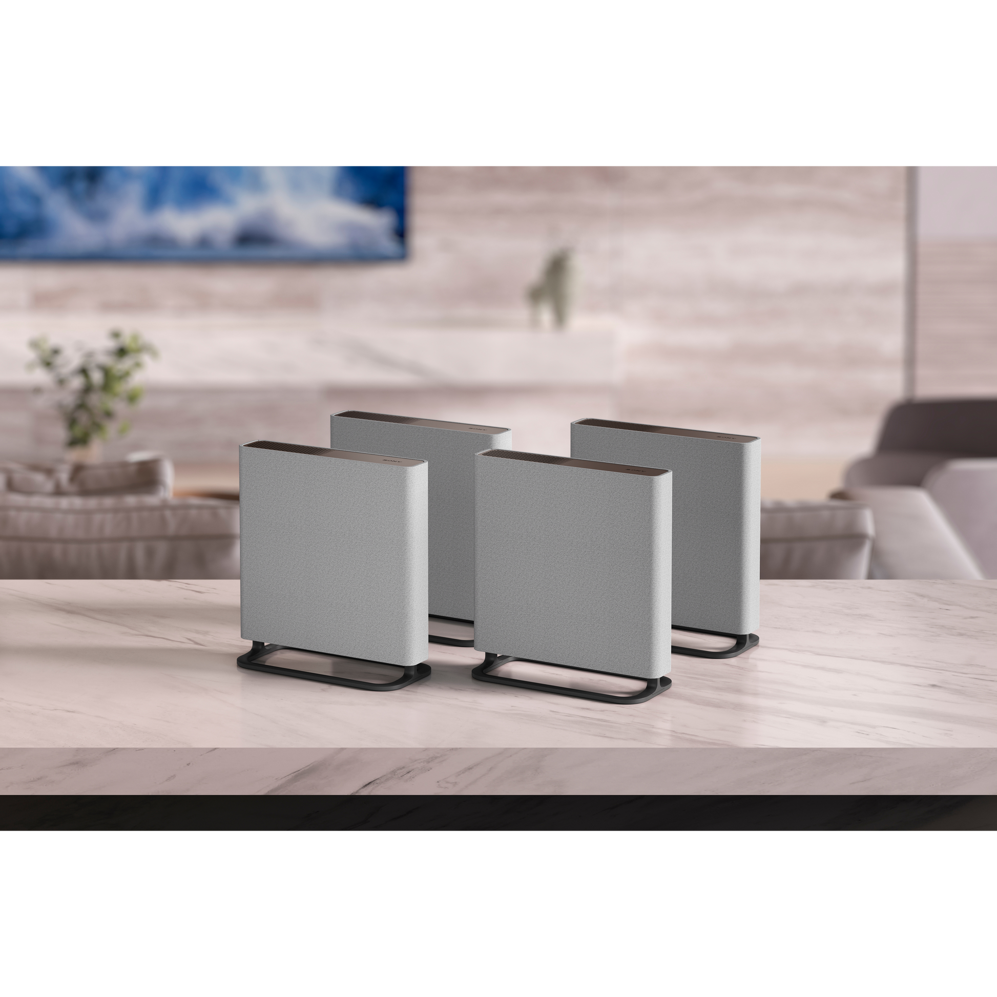 No need to rearrange your furniture - dual microphones inside each speaker measure their relative height and position to generate multiple phantom speakers that encircle your room in immersive sound.