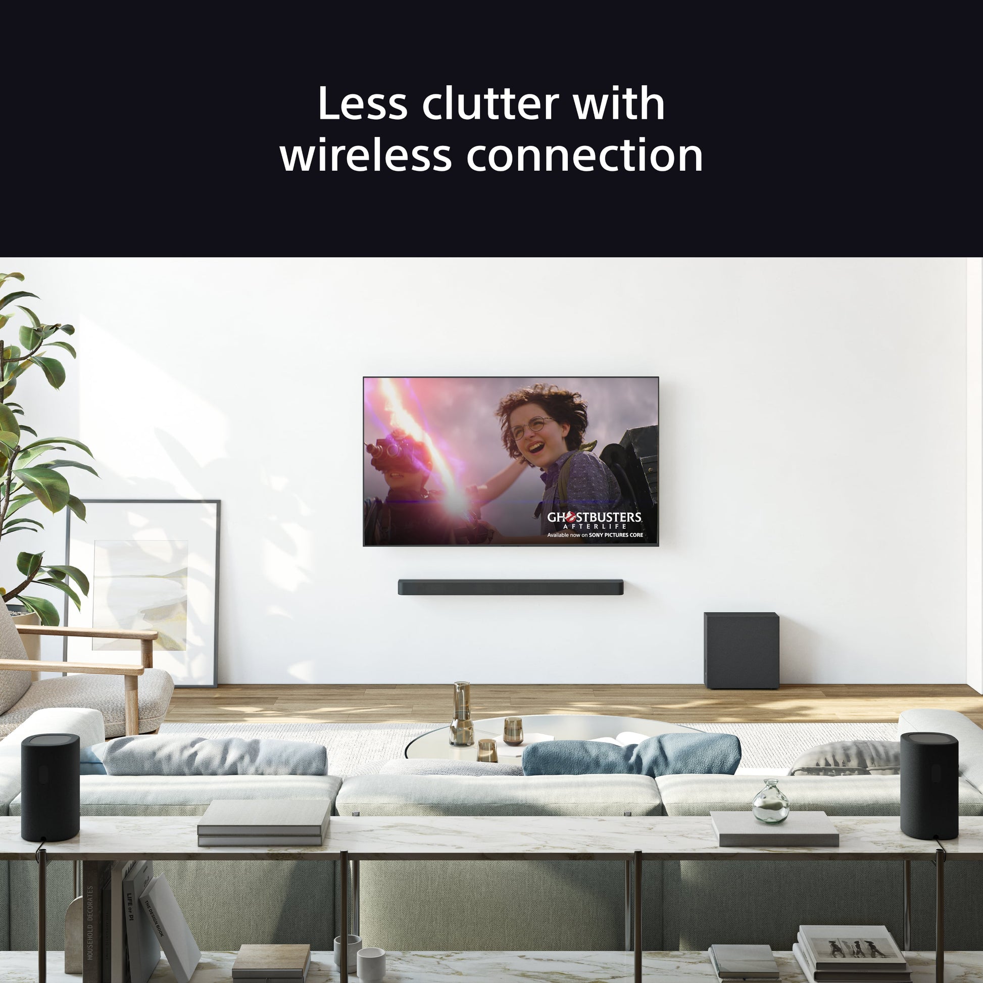 In fact, the entire BRAVIA Theatre range of TVs, soundbars, subwoofers, and speakers are not only designed to complement each other, but also your interior décor. Shaped, coloured, and treated to blend in with walls and furnishings, these speakers can be placed anywhere behind you, and as they are completely wireless, your space will remain neat and tidy.