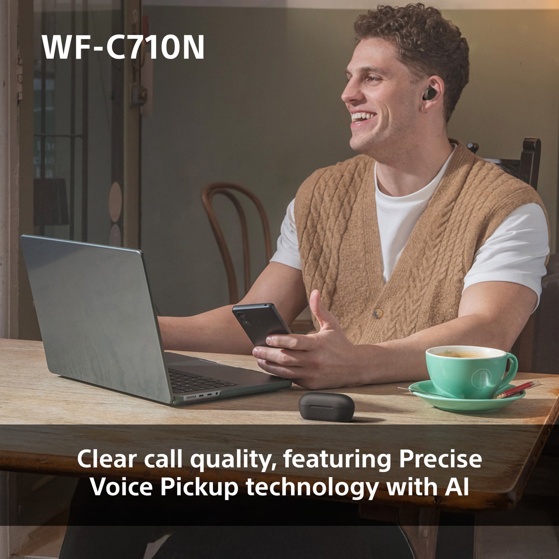 The WF-C710N deliver high-quality sound with detailed highs, powerful lows, and a rich mid-range for a clear and immersive music experience.