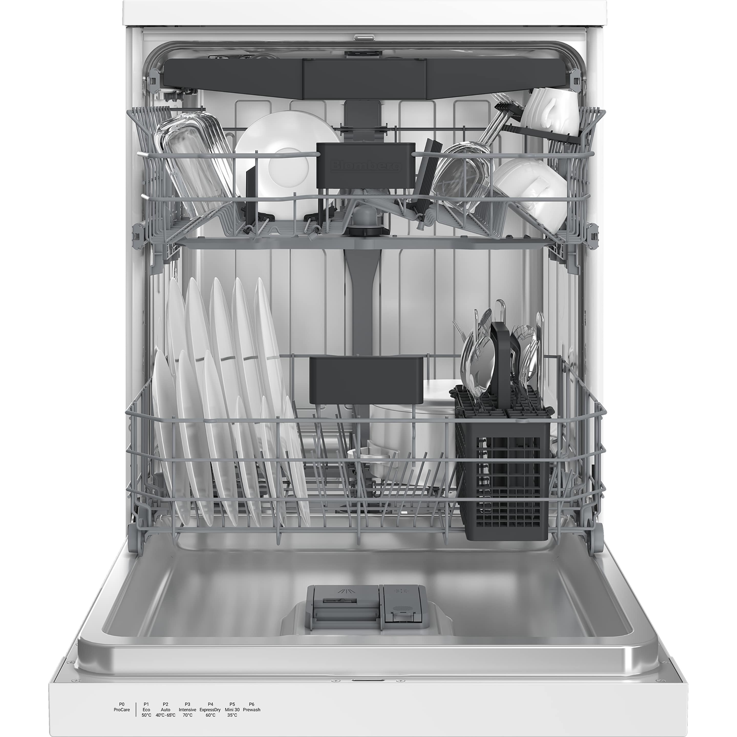 Perfect for busy days, this freestanding dishwasher features a range of time-saving settings, including the ExpressDry programme that cleans a full load in 58 minutes. It offers folding plate supports and a fully flexible upper basket for maximum convenience. There’s also a Hygiene+ function designed to eliminate over 99.999% of bacteria and viruses from your dishes, helping to maintain a safe, healthy environment for you and your loved ones.
