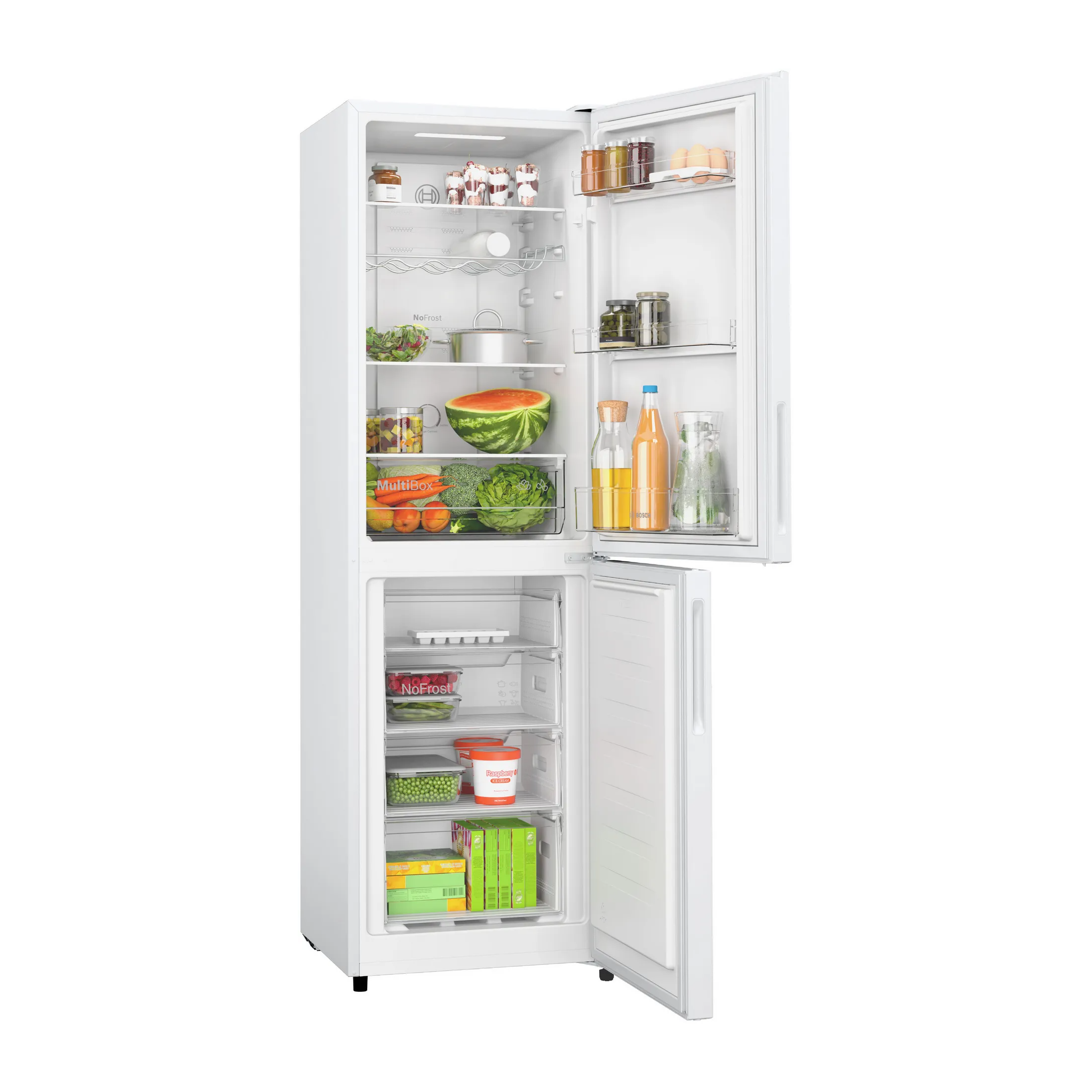 The fan-assisted MultiAirflow System causes gentle, even currents of cold air to emerge at all levels of the chilling and freezing area. Temperature fluctuations are minimised and cooling times reduced – which helps your foods retain their flavour for longer.