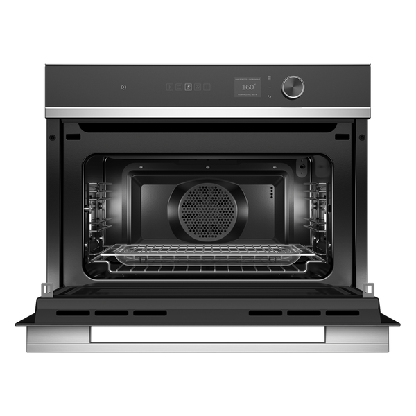 This Fisher and Paykel built in combination microwave oven brings together microwave speed and convection oven versatility in a compact 60cm format. Its 49L capacity and four shelf positions provide flexibility for everyday cooking, reheating, and grilling, while the integrated convection system supports reliable heat circulation.