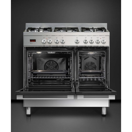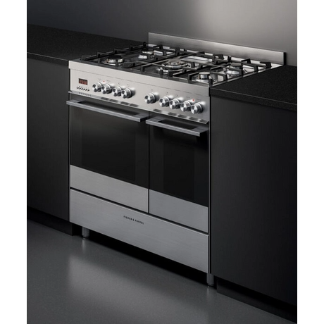 The Fisher & Paykel OR90L7DBGFX1 dual fuel range cooker offers a flexible setup for varied cooking tasks, combining gas burners with electric ovens for consistent performance. Its stainless steel finish suits modern kitchens, while the 90cm width provides generous space across both cooktop & ovens.