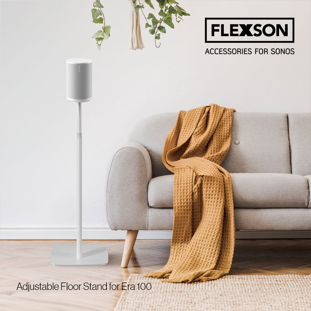 The Flexson Essentials Adjustable Floor Stands for Sonos Era 100 can hold the speaker at a range of heights, allowing them to adapt to a range of potential Sonos set-ups. Whether you need to hold your speakers lower or higher than a standard floor stand would, the Flexson Essentials Adjustable Floor Stands are ready to serve, in style.