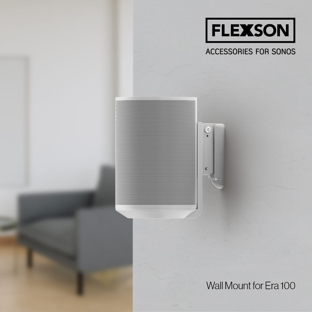This Flexson Wall Mount is built to hold your Sonos Era 100 speaker at the ideal listening height and position, thanks to the unique tilting mechanism and swivel that allows for easy movement of your speaker into the perfect angle and now with corner mount adapter plate.
