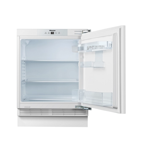 Offering a spacious capacity and top storage features, this Hisense larder fridge is perfect for families. It’s an undercounter, built-in design with a reversible door and adjustable feet, making it ideal for those who are short on space. It has three shelves, one salad crisper, and is easily managed by an LED display with electronic control. The RUL178D4AWE also comes with an LED internal light and an open-door alarm for added peace of mind.