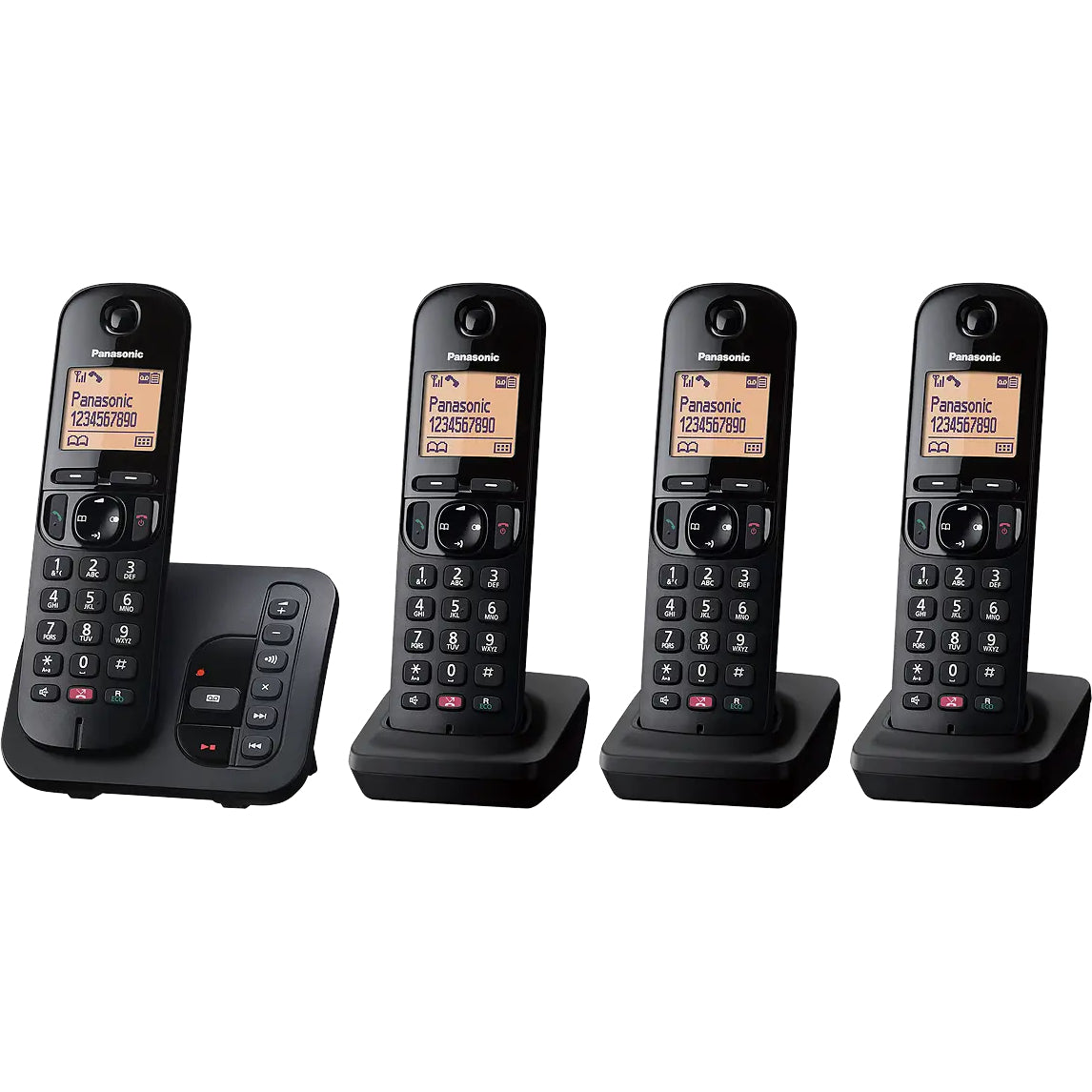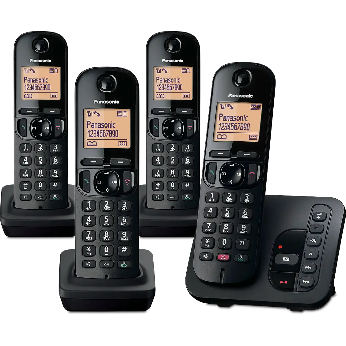 Digital cordless phone with an 18-min answering machine, a dedicated call block button, an easy-to-read dot-matrix display and a hands-free speakerphone. 3 x additional handset with charge station included.