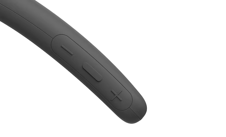 Loud voices, quiet voices, calls are a mix of pitch and tone. You can easily control volume to a level that’s comfortable for you by touching the volume button on the side of this Sony neckband speaker. You can also play and pause when listening to music.