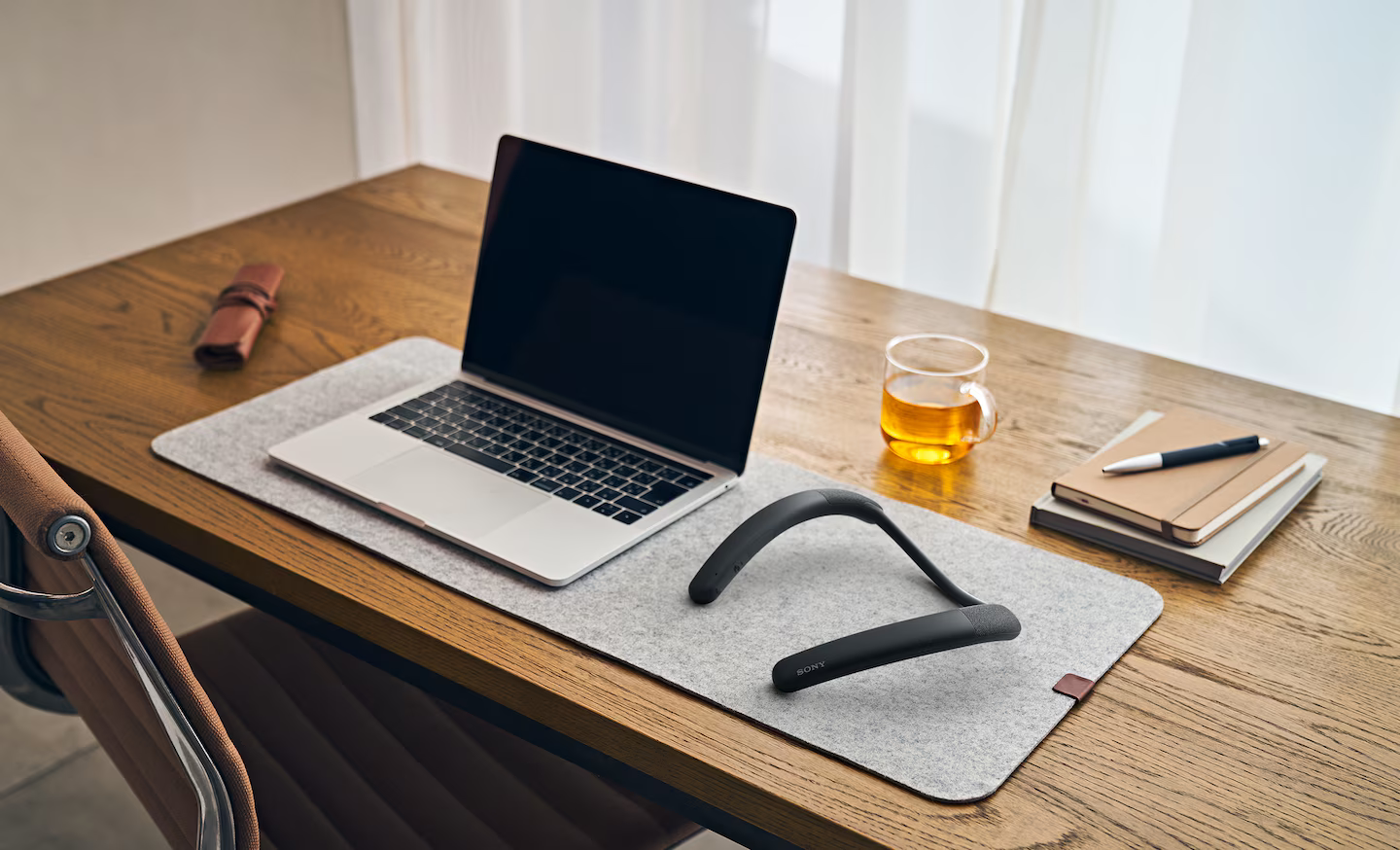 Light and comfortable, this wireless neckband speaker is designed for all-day working from the first meeting to the last call. They fit securely around the neck and rest gently on the shoulders so you can keep wearing them when your work is done – perfect for listening to music while making dinner or clearing up.